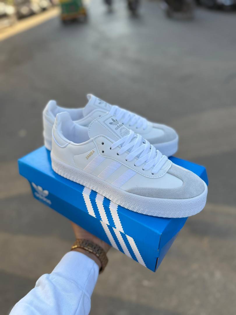 Adida s Samba Triple White Satin Stripe